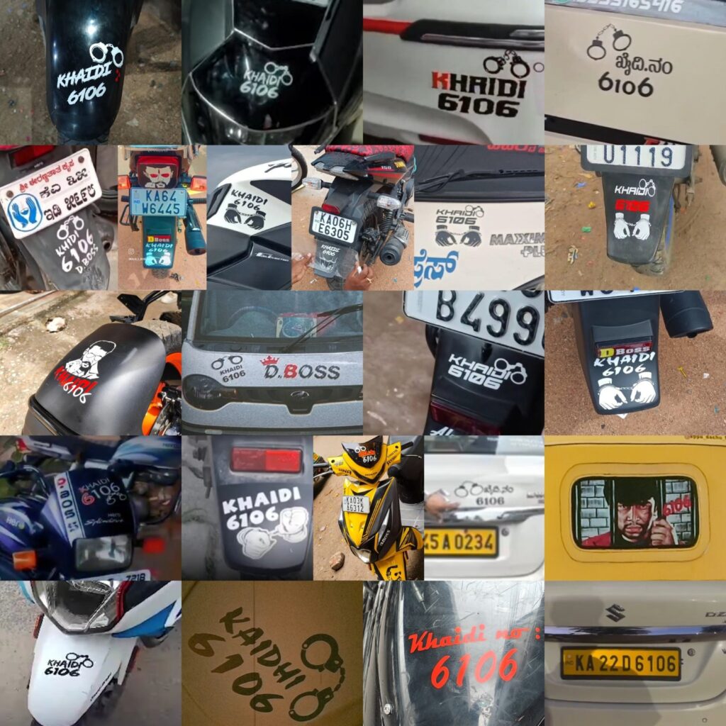 ಬೆಂಗಳೂರಿನ ಪರಪ್ಪನ ಅಗ್ರಹಾರದ ಕೇಂದ್ರ ಕಾರಾಗೃಹದಲ್ಲಿ ದರ್ಶನ್ ಅವರಿಗೆ ವಿಚಾರಣಾಧೀನ ಖೈದಿ ಸಂಖ್ಯೆ ʼ6106ʼ ಅನ್ನು ನೀಡಲಾಗಿದೆ. ಇದರ ಬೆನ್ನಲ್ಲೇ ದರ್ಶನ್ ಅಭಿಮಾನಿಗಳು ಈ ನಂಬರ್ ಅನ್ನು ಮೆರೆಸಲಾರಂಭಿಸಿದ್ದಾರೆ. ತಮ್ಮ ವಾಹನಗಳ ಮೇಲೆ “ಖೈದಿ ನಂಬರ್ 6106” ಎಂದು ಸ್ಟಿಕ್ಕರ್ ಅಂಟಿಸಿಕೊಳ್ಳುತ್ತಾ ದರ್ಶನ್ ಪರ ಬೆಂಬಲಕ್ಕೆ ನಿಂತಿದ್ದಾರೆ. ಈ ಫೋಟೋಗಳು ಸಾಮಾಜಿಕ ಮಾಧ್ಯಮಗಳಲ್ಲಿ ಹಂಚಿಕೊಂಡಿದ್ದು ಸಖತ್ ವೈರಲ್ ಆಗಿದೆ. ಜೈಲಿನಲ್ಲಿ ದರ್ಶನ್ಗೆ ನೀಡಲಾಗಿರುವ ಕೈದಿ ನಂಬರ್ ಅಭಿಮಾನಿಗಳಿಗೆ ಇದೀಗ ಲಕ್ಕಿ ನಂಬರ್ ಆಗುತ್ತಿದೆ. ಸದ್ಯ ಹೀಗೊಂದು ಟ್ರೆಂಡಿಂಗ್ ಸಾಮಾಜಿಕ ಜಾಲತಾಣಗಳಲ್ಲಿ ಸದ್ದು ಮಾಡುತ್ತಿದೆ.